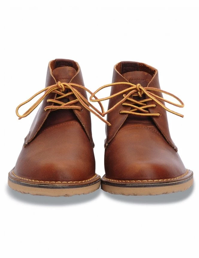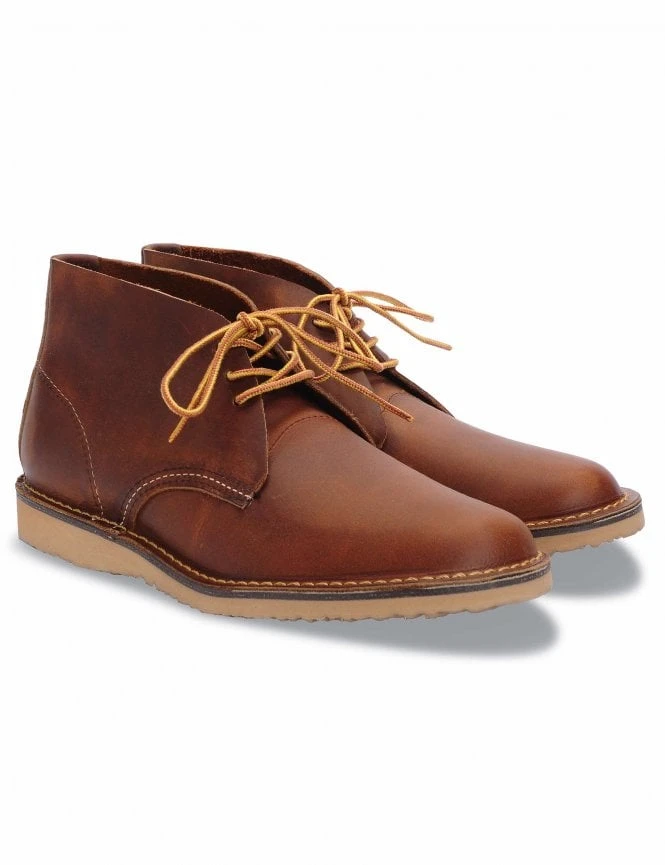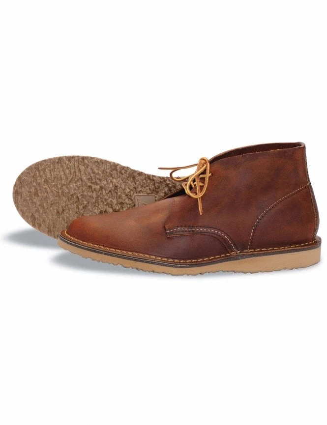 In contrast to the more rugged silhouette of the Moc Toe Boot the Chukka Boot was originally designed for carpenters who needed a shoe that was robust enough for their work but light enough to be worn indoors without leaving scuffs. Over the years the shoe has been refined for modern wear and is built from beautiful tanned leather and features a signature rounded toe and Goodyear Welt construction for a light, comfortable feel. This one comes in the Copper Rough and Tough colourway.