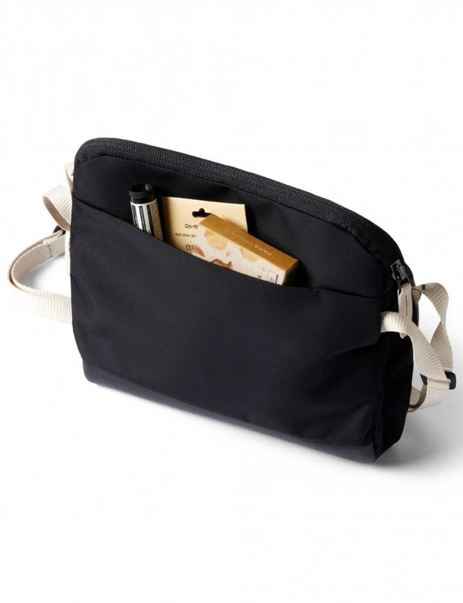 The Black Sand finish provides a sleek, monochromatic look that pairs effortlessly with any outfit. This Premium Plus edition features an upgraded wide shoulder strap for enhanced comfort and a more robust presence, while the clever expansion gusset ensures the bag maintains its slim profile even when fully loaded.
