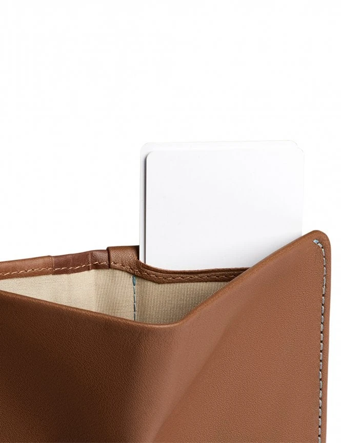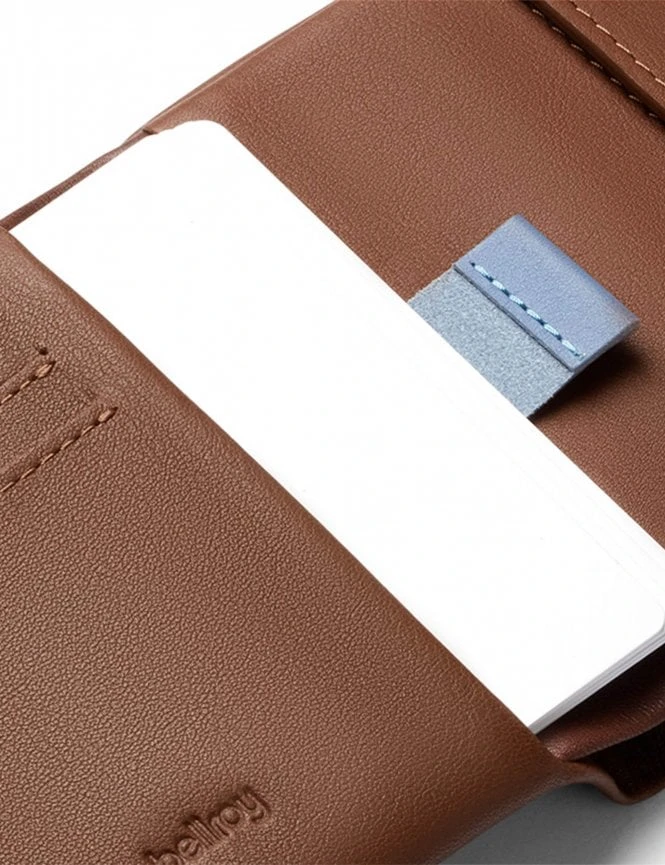 Visual Details: This wallet features a warm Hazelnut brown exterior crafted from premium, eco-tanned leather. It is accented by a subtle metal Bellroy Owl logo on the front, signifying quality and sustainable craftsmanship.