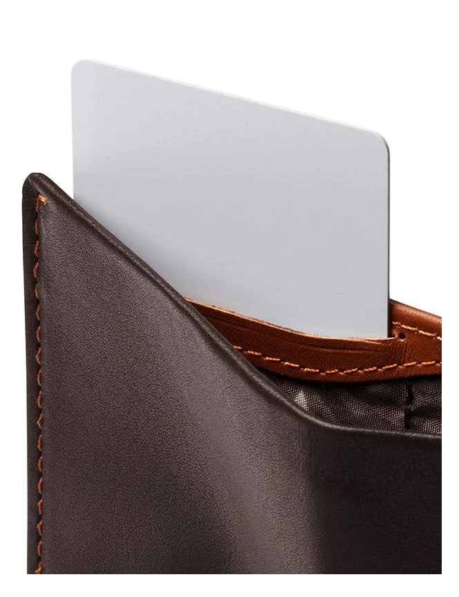 The Bellroy Note Sleeve in Java/Caramel is the ultimate all-rounder for those who want to slim their pocket without sacrificing utility. This wallet features a striking contrast between a deep Java chocolate exterior and a warm, inviting Caramel interior, offering a refined aesthetic that ages beautifully over time.