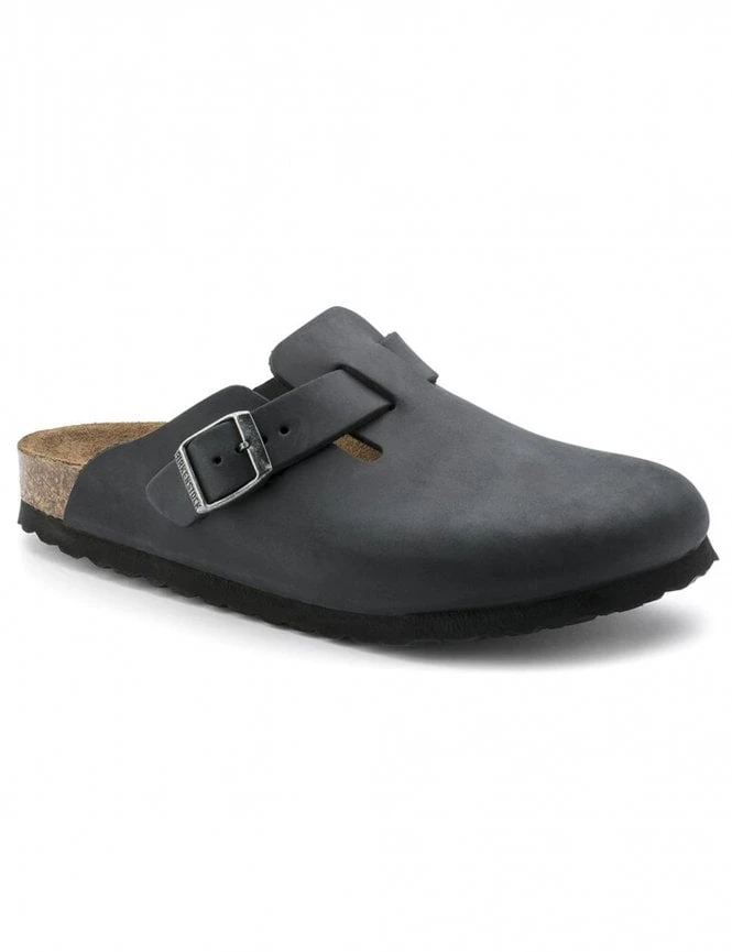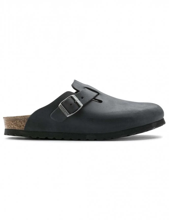 The Birkenstock Boston Mules in black are a classic and versatile footwear option. These mules feature a leather upper, providing durability and a polished look. The cork insole and outsole offer exceptional comfort and support, molding to the shape of your foot over time for a customized fit. With a rubber sole, these mules provide traction and stability on various surfaces. The metal buckle fastening allows for easy adjustability, ensuring a secure and personalized fit. The clog style of the Boston Mules adds a touch of uniqueness and timeless appeal to your outfit.