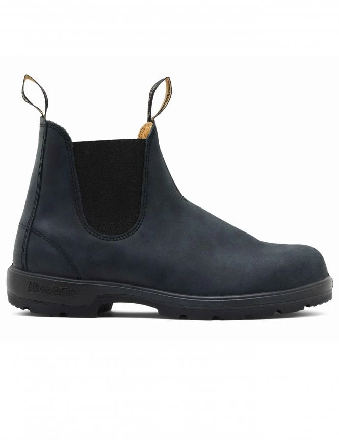 These Blundstone 587 Classics Leather Chelsea Boots in Rustic Black are the upgraded versions of the original styles that have progressed in design, technology, and materials while maintaining high quality. Premium fabrics, side stretch panels, front and back pull tabs, and a replaceable footbed are among the features. Signature branding, an extra set of footbeds for fit refinement, and a deeper sole unit than the classic styles are all included.