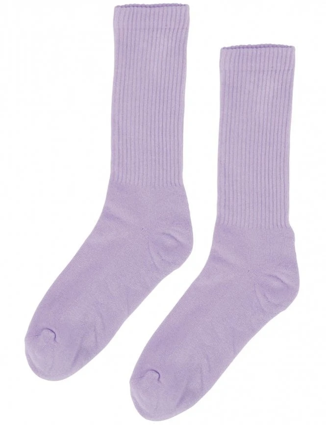 Rendered in a soothing Soft Lavender pastel, these socks feature a classic high-ribbed leg texture and a reinforced footbed. The minimalist aesthetic is complemented by the rich, even pigment achieved through eco-friendly dyeing processes.