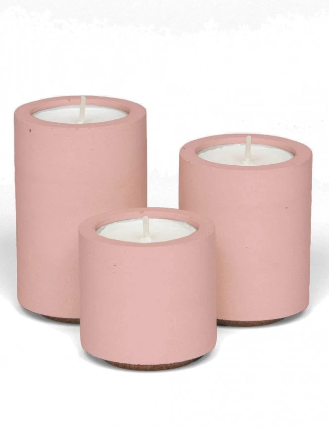 This set features three beautifully finished blush concrete holders, each supported by a natural cork foot. This unique design creates a “floating” effect on your surfaces while ensuring a secure, snug fit when the units are stacked. Whether displayed individually or as a sculptural tower, they adapt to your style.