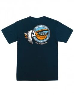 Set sail with this Dark Seas Delivery Boy Premium Tee. Made from 100% cotton, the t-shirt has a crew neck which is ribbed supplying warmth and comfort. It is a short-sleeved t-shirt with an eye-catching print on both the front and back. It comes in a regular fit.