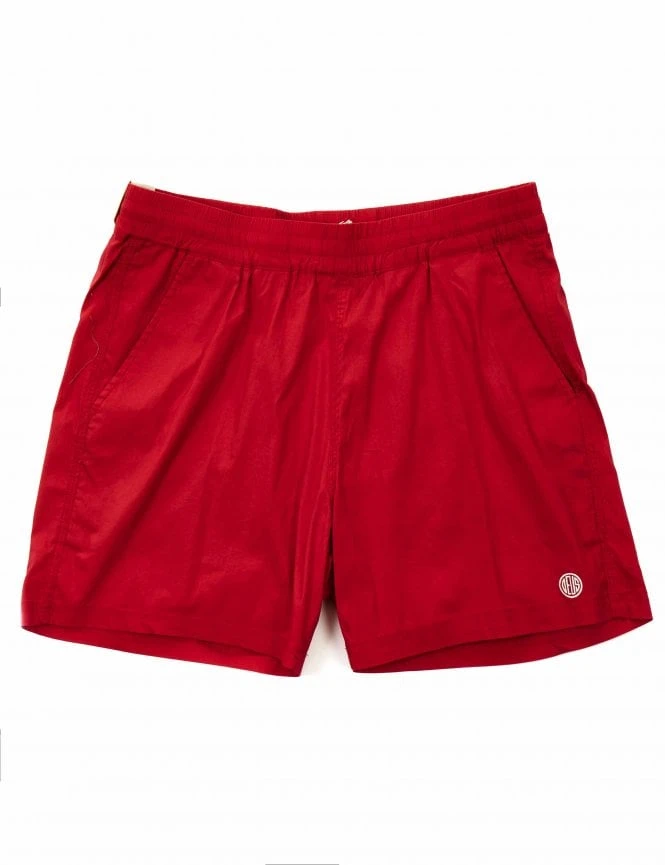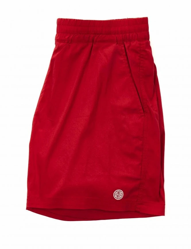 These mesh-lined men’s swim shorts with an elasticated drawstring waistband, two open front pockets, and a single Velcro rear pocket are made from a cotton-blend garment wash construction. The rear pocket of the shorts features a rubberised Deus Ex Machina logo.