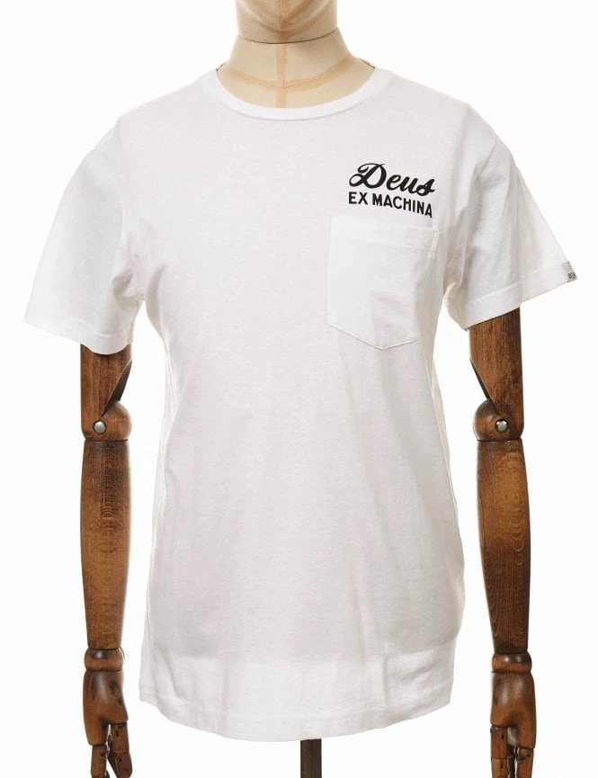 We want to introduce you to this Deus Ibiza Pocket Address Tee in White, constructed from 180gsm Combed cotton with a Deus logo and pocket on the front and a print dedicated to ‘The Island of Future Past’ address in Ibiza.