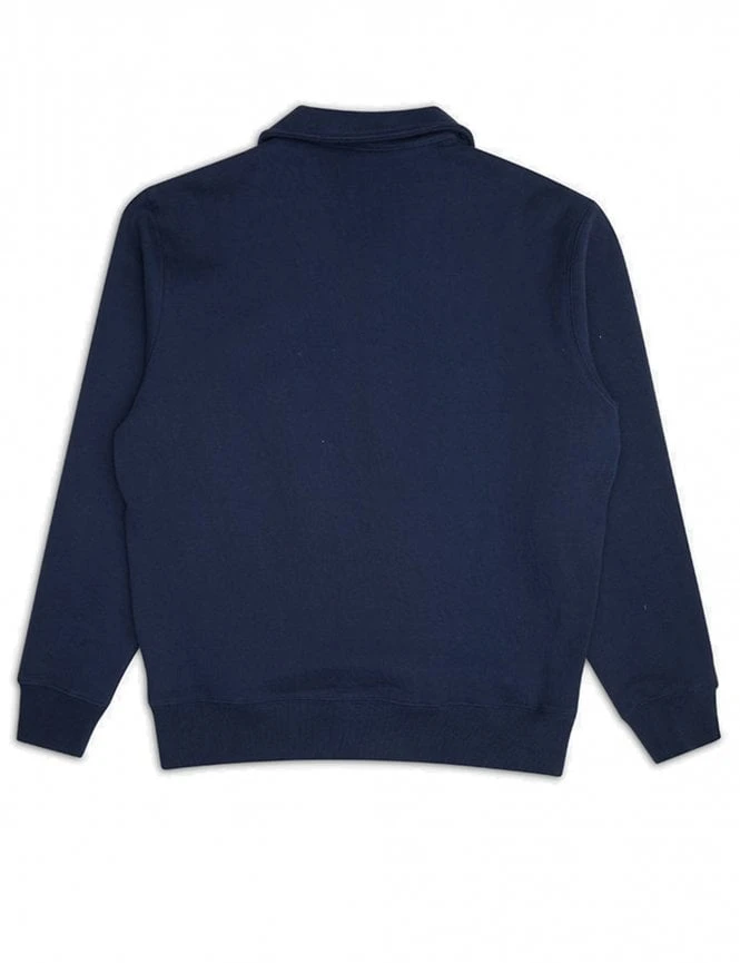 This Deus Ex Machina Naval Zip Neck is made from 100% cotton. It has a zip neck and a collar so you can keep the cold out while maintaining a classic polo shirt look, perfect for Fall and Winter. It is an oversized fit top and the colour has a stonewashed look.