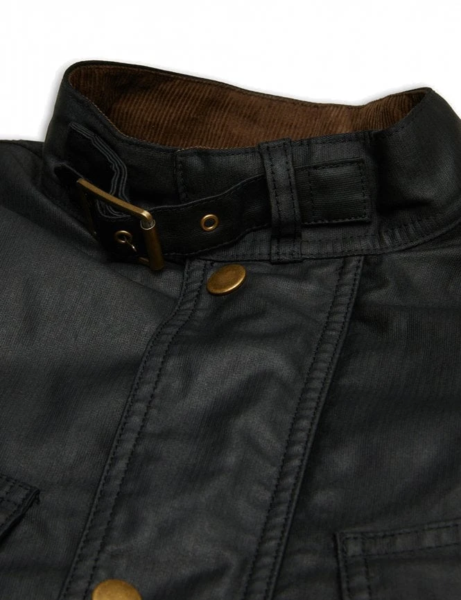 This Deus Ex Machina Trials Jacket is an essential in any collection. Made from 100% dry wax cotton, this jacket is perfect for anything from motorcycling to grabbing a drink with some friends. The colour of the jacket really stands out when contrasted with the brown corduroy collar and golden studs and zips.