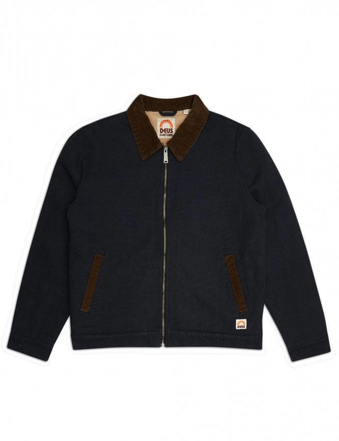 Leave the house in style with this Deus Ex Machina Utah Jacket. Made from 100% canvas cotton, it comes in a regular fit and features a sherpa lining. The jacket is packed to the brim with subtle details such as the brown corduroy accents on the collar and pockets, as well as the Deus emblem on the left side.