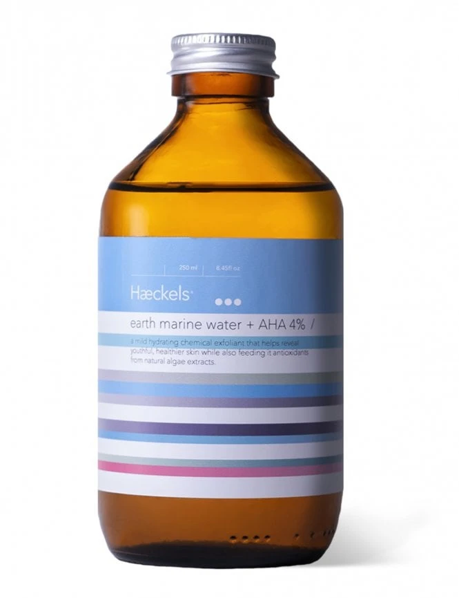 Earth Marine Water + AHA 4% is a natural chemical exfoliator that can help with resurfacing to reveal younger looking skin, visibly reduces pore size, and diminish the appearance of discolouration and fine lines.