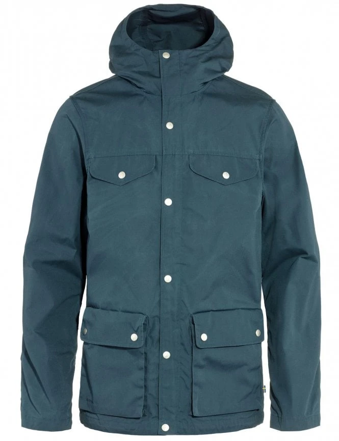 This Fjallraven Greenland Jacket is made from 65% polyester and 35% cotton. Perfect for the autumn, the jacket features a hood, button fastening and is water-repellent. The jacket also features a Fjallraven branded leather patch woven into the arm of the jacket.
