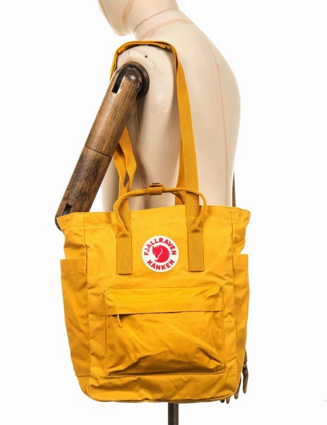 Finished in the signature Ochre colorway, this Totepack features the timeless Kanken silhouette enhanced with long webbed shoulder straps and reinforced top handles. The durable Vinylon F fabric ensures longevity and a distinct matte finish that stands out in any urban landscape.