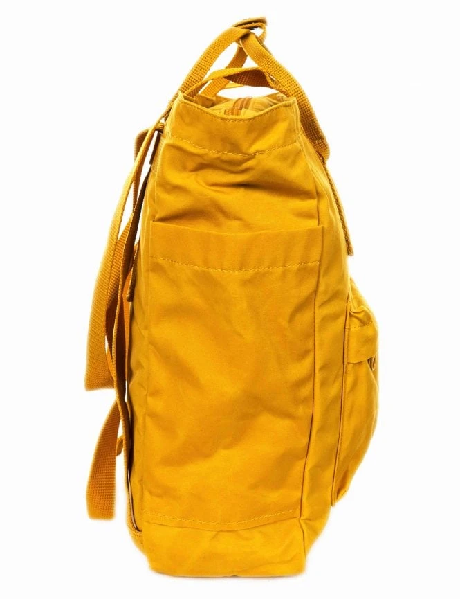 The Fjallraven Kanken 14L Totepack in Ochre is the ultimate hybrid for the modern commuter. This vibrant, warm yellow convertible bag seamlessly transitions from a classic Kanken backpack for cycling to a stylish shoulder tote for boarding a crowded bus or train.