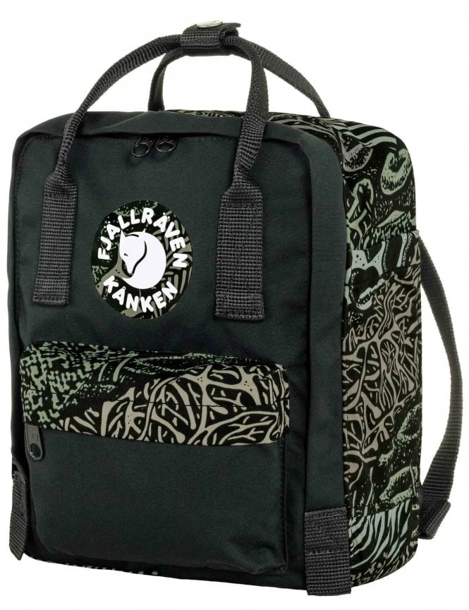 Carry a masterpiece with the Fjallraven Kanken Art Mini in the stunning Darkwoods print. This special edition backpack isn’t just a bag; it’s part of the Kanken Art initiative, featuring a unique forest-inspired design that celebrates our relationship with nature. The deep green base is intricately patterned with vibrant woodland elements, ensuring no two bags look exactly alike.