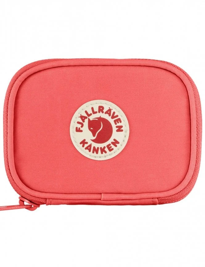 Finished in a vibrant Peach Pink, this wallet features the classic circular Kanken logo on the front for an authentic outdoor heritage look. The wrap-around zipper opens to reveal an organized interior designed for those who value utility and compact carry.