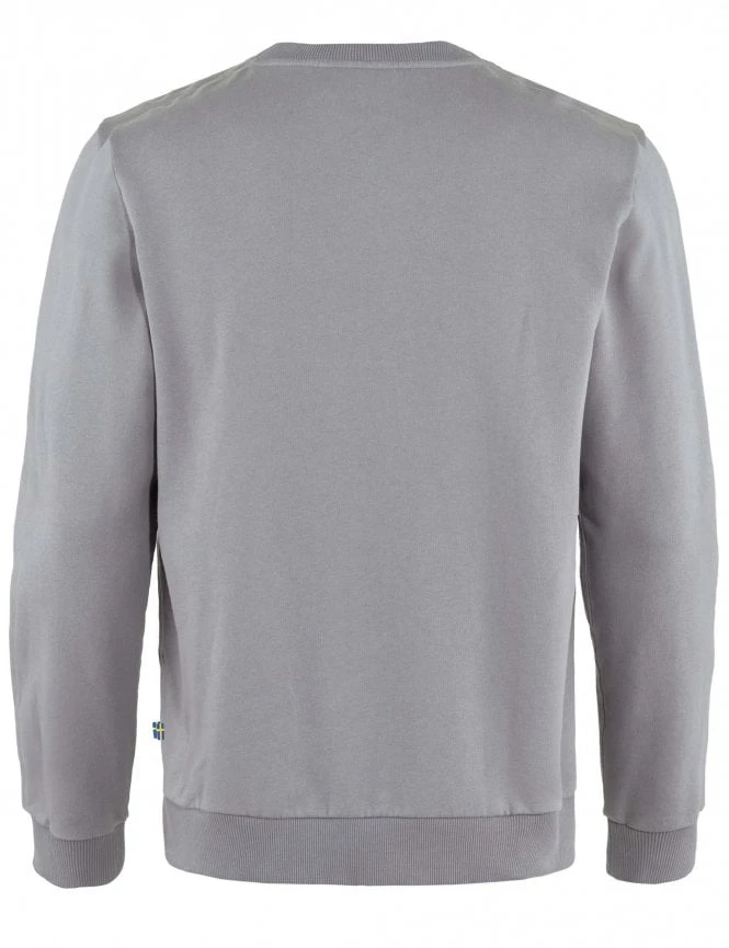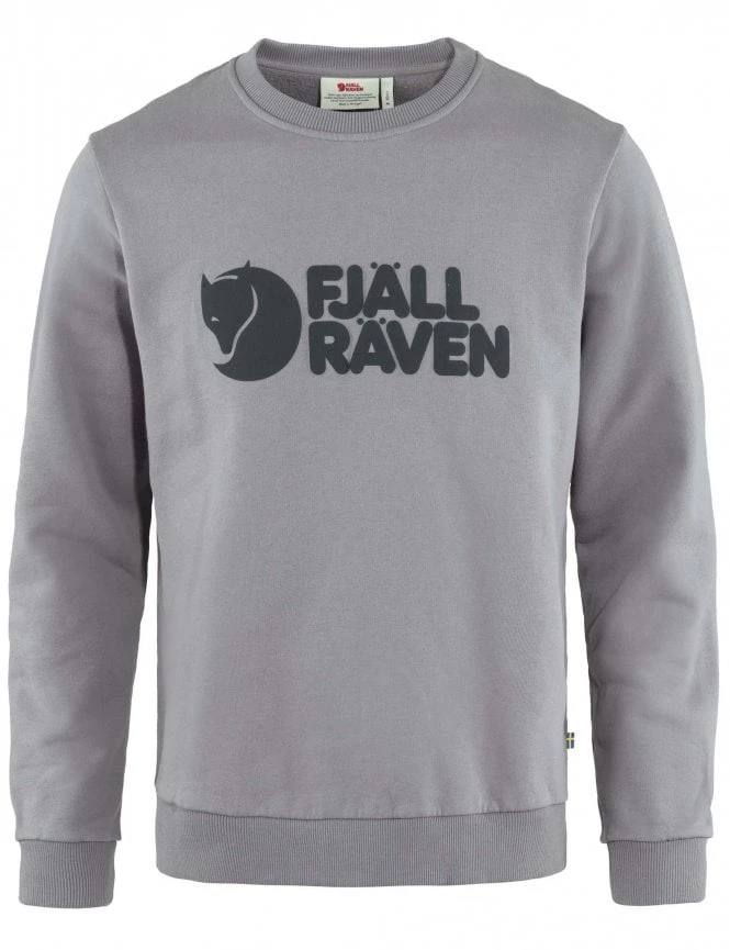 The Fjallraven Logo Sweatshirt in Flint Grey is a regular fit 100% cotton jersey crew neck sweatshirt. It has a round ribbed neckline, ribbed cuffs and a ribbed hem. It is a classic long-sleeved sweatshirt made with organic cotton with a soft brushed inside. It has a large bold Fjallraven logo printed on the chest of the garment. This is a perfect top layer for the warmer weather or a warm cosy mid-layer in the colder months. This sweatshirt is not only stylish but also has great function for outdoor activities.