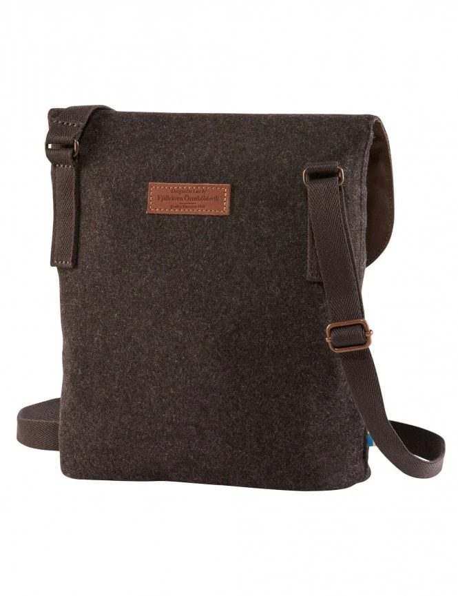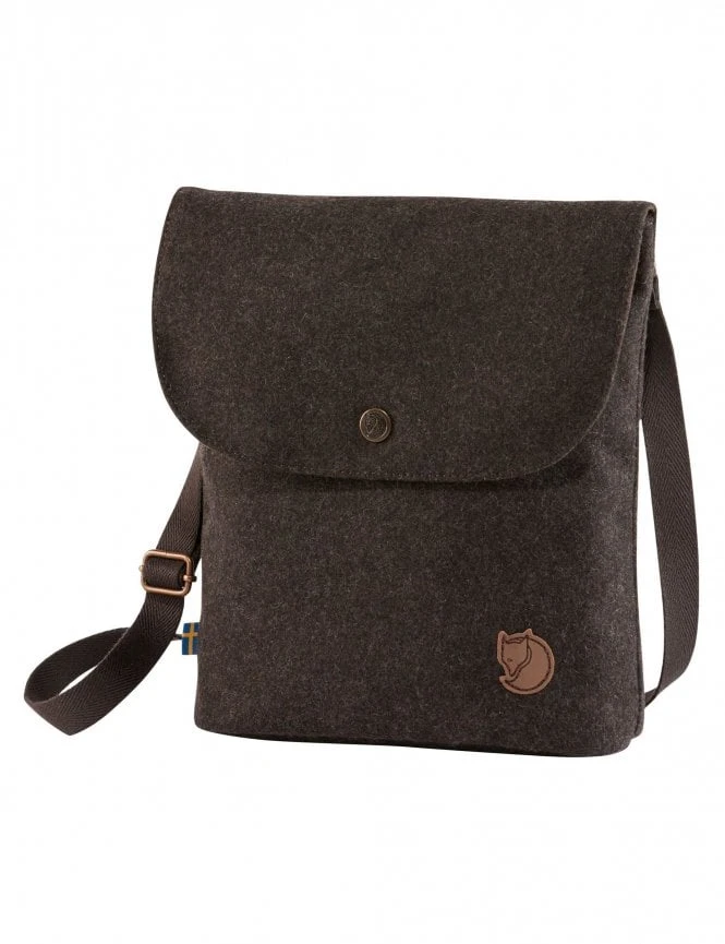This bag features a rich, earthy brown Melton wool body that provides a natural water-resistant quality. The front is adorned with the iconic Fjallraven Arctic Fox leather logo, signifying premium quality. Its slim, unobtrusive profile makes it the perfect ‘pocket’ for your passport, phone, and cards during travel or daily errands.