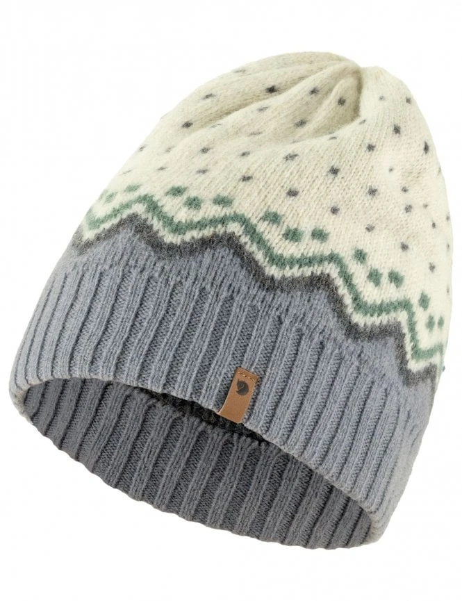 Elevate your winter wardrobe with the Fjallraven Ovik Knit Beanie in Chalk White. This beautifully crafted hat features an intricate, Nordic-inspired pattern that pays homage to the legendary Ovik Knit Sweater. Designed for those who value both aesthetics and ethical production, this beanie is made from 100% traceable wool, ensuring you stay warm while supporting sustainable practices.