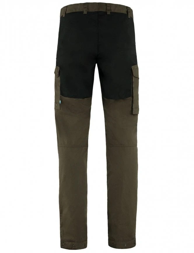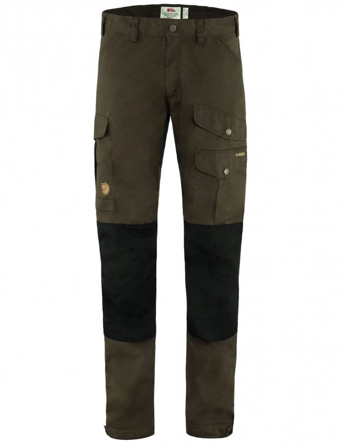 The Vidda Pro Trousers by Fjallraven are durable trekking trousers for adventures in the outdoors. Made from a durable G-1000 Original Fabric that is wind and water-resistant. They have double-layered knees and rear for extra durability. Regular waist and regular fit leg. Six practical pockets including a map pocket and an axe pocket. Elastic strap adjustments with press buttons on leg endings. Perfect for any outdoor adventure in any conditions.