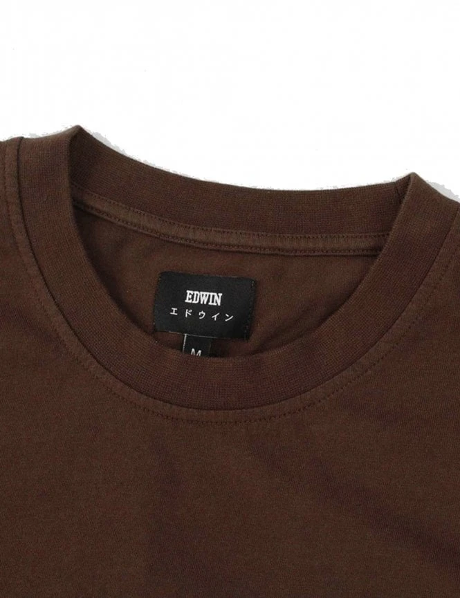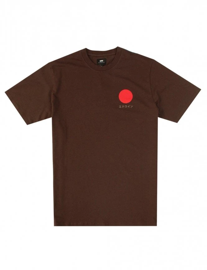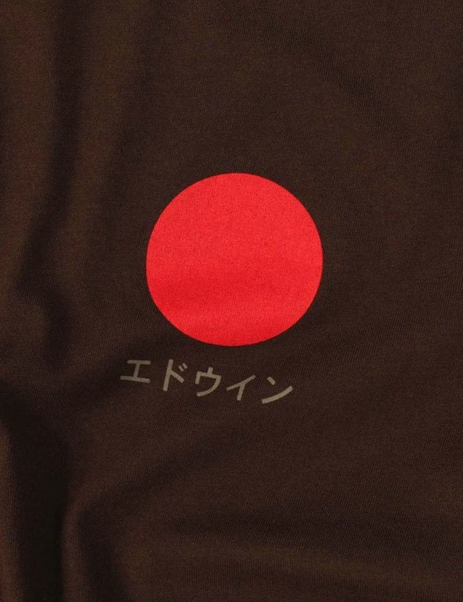 The Edwin Japanese Sun Tshirt in Java is made from 100% cotton and has a regular fit. The product contains a chest print and a collared rib. The T-shirt is also manufactured in Portugal.Â