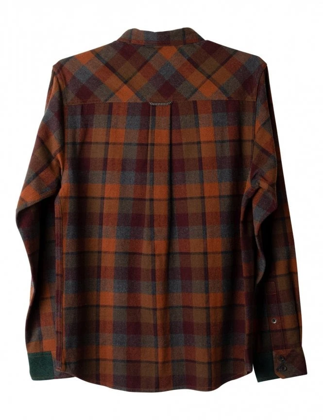 The Buffaroni Shirt by Kavu is a casual fitting 100% organic cotton flannel, long-sleeved shirt. It is a classic button-up shirt with two chest pockets and a curved hem. It has a stand collar with interior Kavu logo jacquard tape. This piece is a perfect layering piece or can be worn as an overshirt keeping you warm but still stylish.