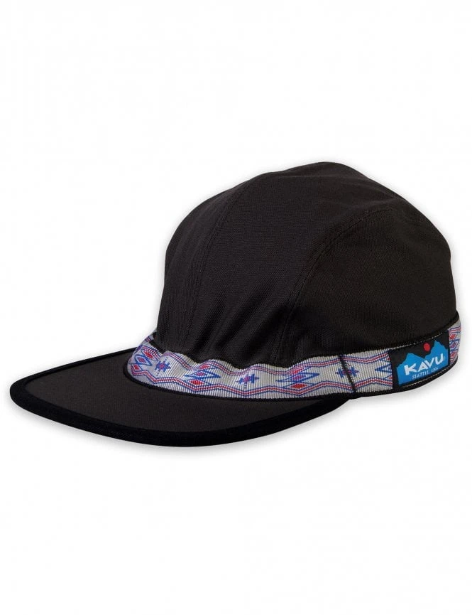 This cap features a sleek, monochromatic Jet Black crown and curved bill, accented by KAVU’s signature patterned nylon tubular webbing. This isn’t just a design choice—the webbing boasts a 4,000lbs breaking point, ensuring your hat stays secure even in the strongest winds. The structured yet flexible 4-panel build offers a unique silhouette that sets it apart from standard baseball caps.