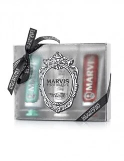The Travel Flavour Collection from Marvis contains 3 travel-size tubes of their award-winning flavoured toothpaste including: Cinnamon, Classic, Whitening. Each Marvis toothpaste comes elegantly packaged with classic, old-school styling. Now you can sample each of Marvis’s creamy, rich and tingling toothpaste which each helps prevent tooth decay, fight tartar and plaque whilst also keeping your breath fresh.