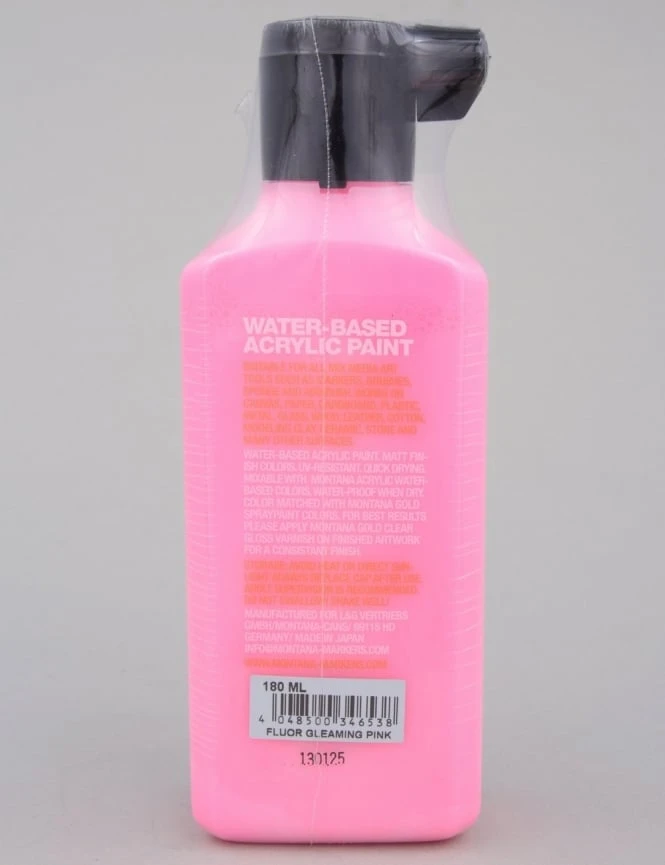 Elevate your creative projects with the Montana Acrylic Paint Refill in Fluorescent Gleaming Pink F4000. This 180ml high-volume refill is designed for the serious artist, offering a brilliant, high-intensity pink that pops under UV light and provides exceptional coverage on various surfaces. Whether you are refilling your markers or using it for airbrushing and brushwork, this water-based acrylic formula ensures professional-grade results every time.