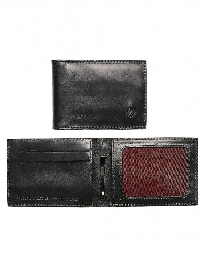 Visual Details: This wallet features a premium matte black full-grain leather finish with a subtle embossed NIXON logo for a refined look. The interior reveals a high-tension money clip and strategically placed card slots for maximum efficiency.