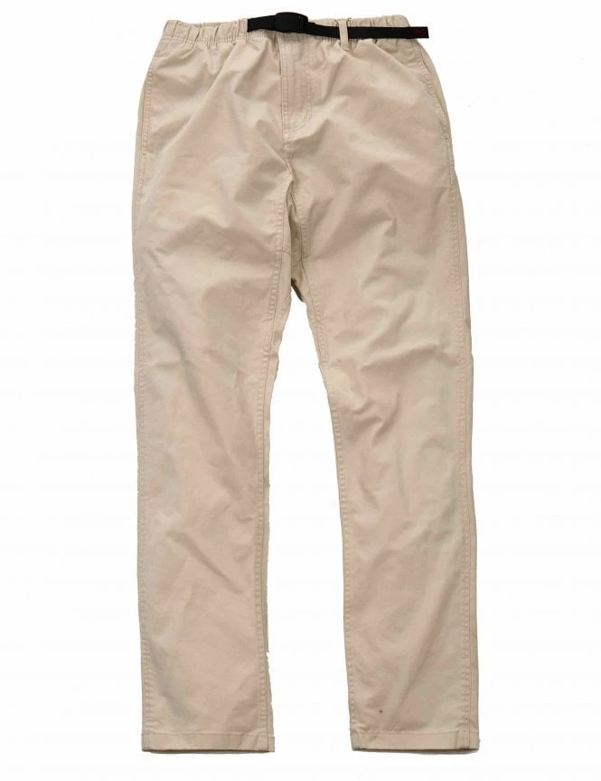 These Gramicci Japan NN Pants in Greige are made of stretch cotton twill and designed for whatever your day throws at you whether that’s climbing a mountain, walking or general day-to-day wear. Pre-washed to give a softer, vintage feel these are low rise and slim fit and complete with two side and two rear pockets and the webbed integrated Gramicci banded belt and buckle.