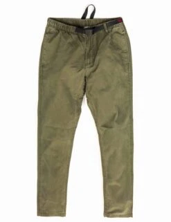 These Gramicci Japan NN Pants in Olive are made of stretch cotton twill and designed for whatever your day throws at you whether that’s climbing a mountain, walking or general day-to-day wear. Pre-washed to give a softer, vintage feel these are low rise and slim fit and complete with two side and two rear pockets and the webbed integrated Gramicci banded belt and buckle.