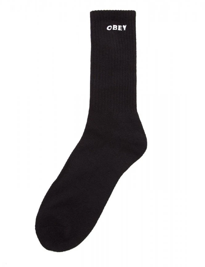 These crew-length socks feature a clean white base contrasted by two thick black horizontal stripes near the cuff. The signature ‘OBEY’ wordmark is knit in a bold, black jacquard font, ensuring the branding stands out whether you’re wearing shorts or cropped trousers.
