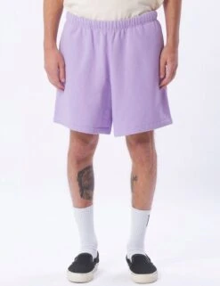 The Digital Lavender colour is a versatile and neutral shade that pairs well with a variety of tops and footwear. It complements both bold and subtle colours, making it easy to create different outfit combinations. The Obey ‘Eyes’ branding patch on the sweat shorts adds a touch of urban style and authenticity to the design. The iconic eyes logo is a signature detail of the Obey brand, representing their unique and artistic approach to streetwear.