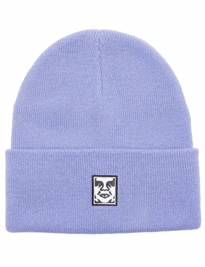 Rendered in a striking ‘Digital Violet’ purple, this beanie features a thick-knit texture and a deep fold-over cuff. The centerpiece is the iconic black and white Obey Giant face patch, centered on the front for immediate brand recognition and high-contrast appeal.