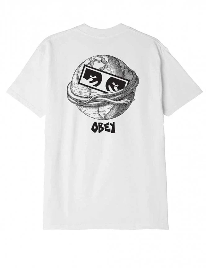 The Obey Ouroboros T-shirt in White is a bold and intriguing piece that adds an artistic touch to your casual wardrobe. Crafted from 100% cotton, this tee ensures a comfortable and breathable feel, making it a great choice for everyday wear. The tee features a small print on the front and a large print on the back, both of which depict the Ouroboros symbol. The Ouroboros is an ancient symbol of a serpent or dragon eating its own tail, representing the concept of infinity and the cyclic nature of life and existence. The use of this symbol in the design adds a sense of mystery, depth, and symbolism to the shirt.