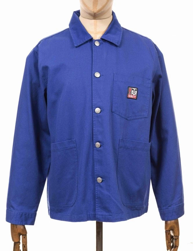 The Obey Pebble Chore Jacket in Ultramarine is constructed from 100% Cotton Twill, the Pebble Chore has a mid-weight and with it’s relaxed fit it’s super easy to layer. The jacket secures with chunky custom Obey branded buttons that also secure the cuffs. Keeping the fresh look Obey have added a small embroidered patch onto the chest pocket to finish.