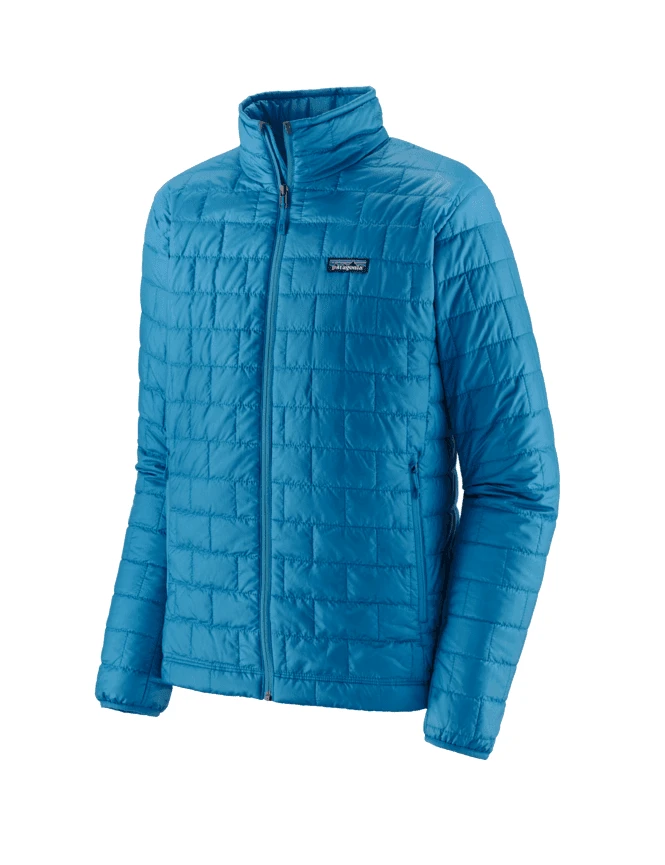 This Patagonia Nano Puff Jacket in Anacapa Blue is a warm, windproof, water-resistant piece. It uses warm, incredibly lightweight and highly compressible 60-g PrimaLoft Gold Insulation Eco with 55% postconsumer recycled content, wrapped in 100% recycled polyester shell and lining. The jacket has a sculpted fit, with narrow, horizontal quilting on the shaped side panels, and the soft wicking interior storm flap and zipper garage add chin comfort.