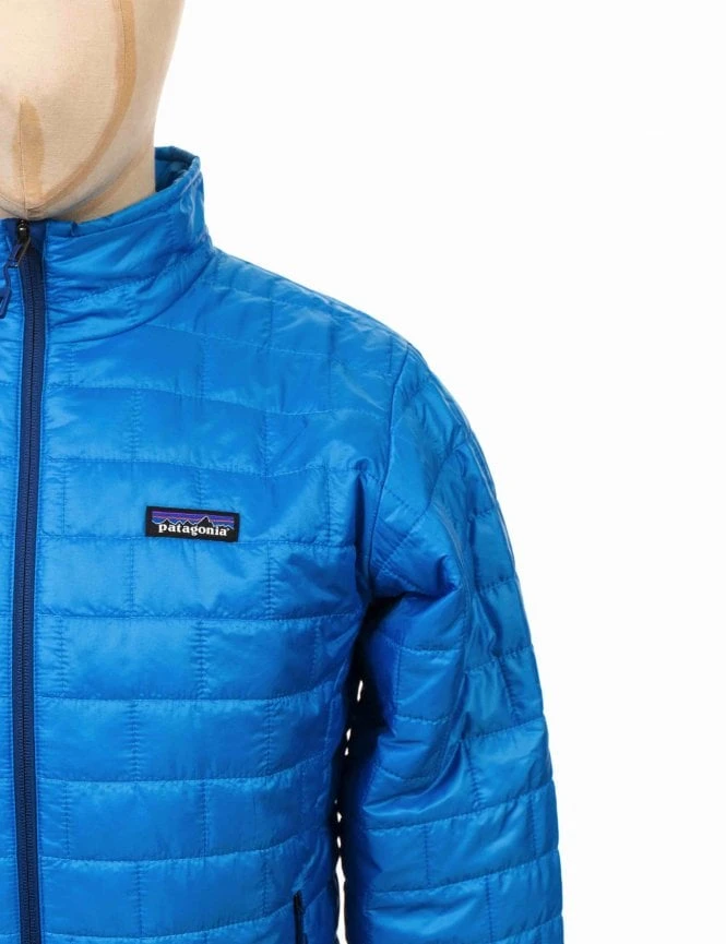 This Patagonia Nano Puff Jacket in Andes Blue is a warm, windproof, water-resistant piece. It uses warm, incredibly lightweight and highly compressible 60-g PrimaLoft Gold Insulation Eco with 55% postconsumer recycled content, wrapped in 100% recycled polyester shell and lining. The jacket has a sculpted fit, with narrow, horizontal quilting on the shaped side panels, and the soft wicking interior storm flap and zipper garage add chin comfort.