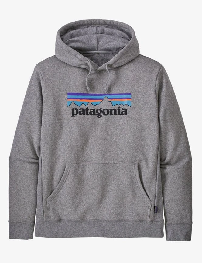 This is Patagonia P-6 Label Uprisal Hooded Sweatshirt in Gravel Heather is made out of 95% recycled materials, like 10.8 plastic bottles and 0.6 pounds of cotton scrap, saving 143 gallons of water vs a conventional cotton sweatshirt. Now, you can save the world one sweatshirt at a time!Â