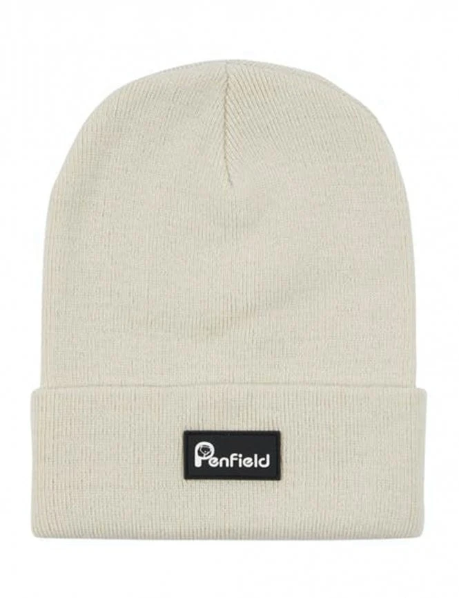 This version comes in a versatile ‘Marshmallow’ off-white colorway, offering a clean look that pairs effortlessly with any outerwear. The front features the signature Penfield box logo patch stitched onto the fold-over cuff, showcasing the iconic bear branding. The chunky rib-knit texture adds a rugged yet sophisticated feel to the silhouette.
