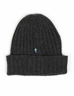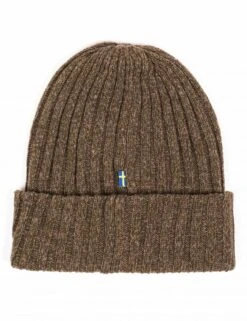 Fjallraven Byron Dark Olive/Taupe – Leather Arctic Fox Logo Double-Knitted Wool Beanie