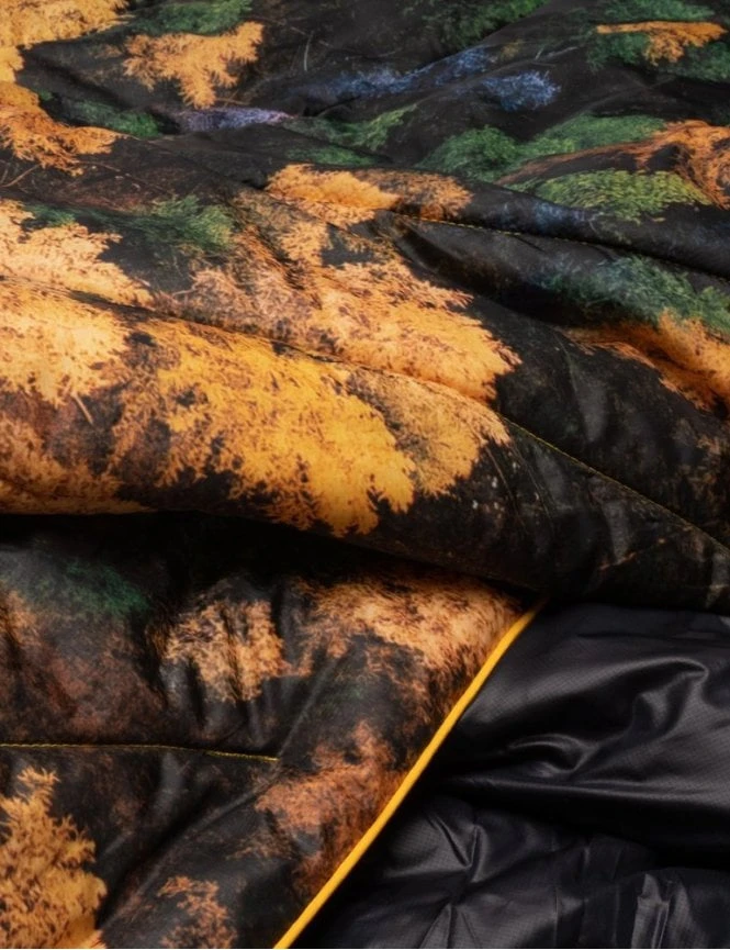 Jeremy Koreski, the photographer behind ‘Old Growth’, one of the all-time best-sellers, is back with a brand new print just in time for the fall season. The Original Puffy Blanker in Gold Growth is made of the same technical fabrics used in high-end sleeping bags and insulated coats to keep you warm and toasty inside and out.