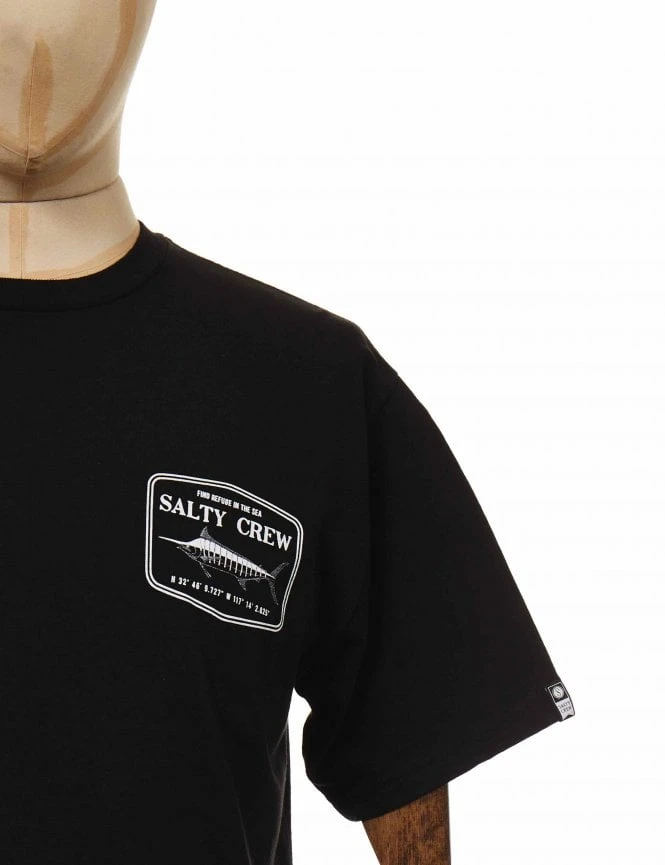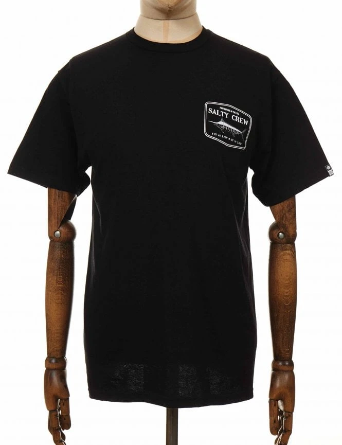 A Salty Crew Stealth Tee in Black, 100% Combed Ring-spun cotton in standard fit is a perfect tee on its own or under a leather jacket, these come with a print in the front and in the back.Â