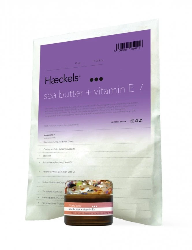 Natural Haeckels Shea Butter and Vit E Lip Balm with high vitamin content to nourish and moisture lips. Peppermint is lightly fragranced with shea butter and hyaluronic acid is blended with dulse extract and vitamin e to create a natural lip balm that provides deep hydration and antioxidant action.