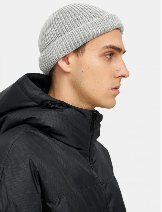 This beanie features a classic heather grey colorway in a chunky, textured ribbed knit that provides both depth and elasticity. The design is finished with a versatile fold-over cuff featuring a discreet SHU woven brand label, ensuring a clean and modern look that pairs easily with any outfit.