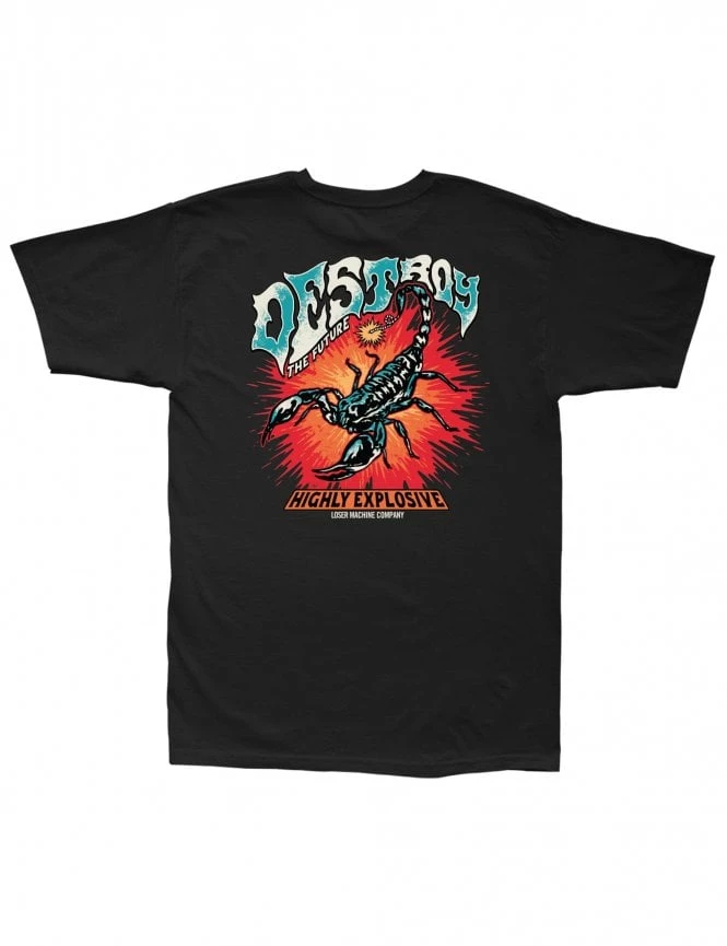 This Loser Machine Stringer Stock Tee is made from 100% cotton. It features short sleeves and a crew neck giving it a classic look. The tee also features a print on both the front of and back of the classic Loser Machine branding as well as a sick print of a swooping eagle.
