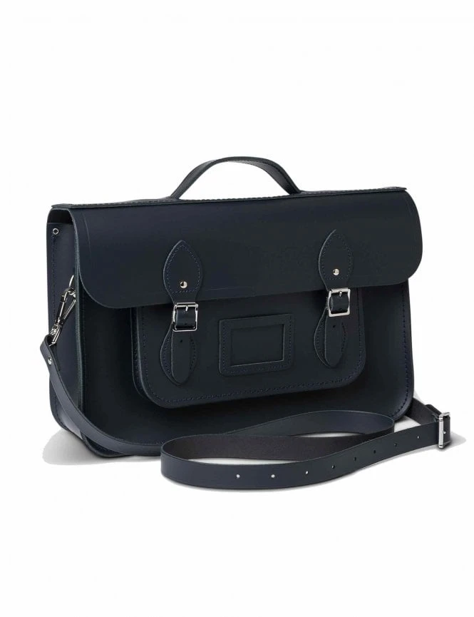 The 15” Batchel in Navy by The Cambridge Satchell Company combines the timeless silhouette of a traditional satchel with the practicality of a briefcase. Handcrafted from premium leather, this deep navy bag is designed to be your ultimate daily companion for work, university, or travel.