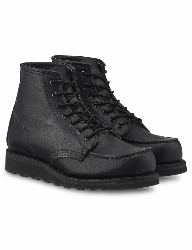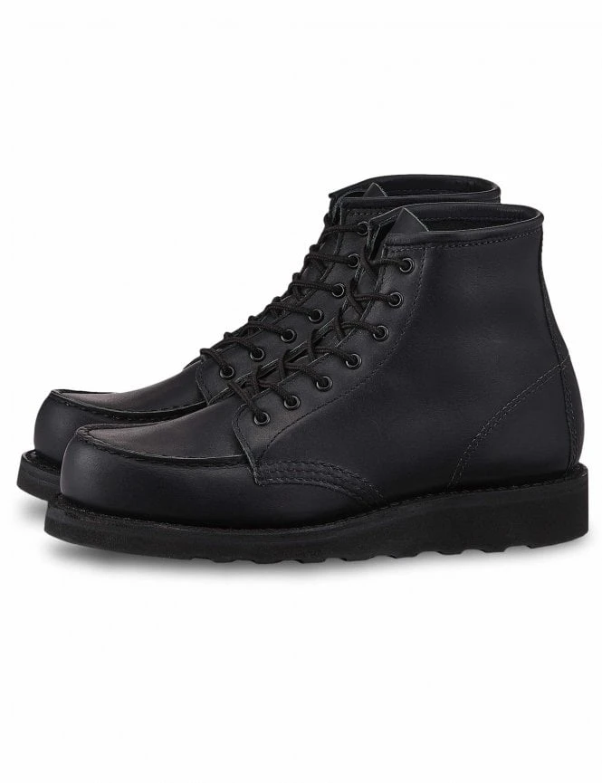 The Women’s Heritage 6″ Moc Toe Boot in All Black Boundary Leather was first made by Red Wing in 1952. In the decades since, it’s grown into one of the most beloved lifestyle boots in the world. The boot was originally made for sportsmen, but it soon grew into a favourite of farm and factory workers for its long-lasting construction and all-day comfort. The women’s 6-inch Moc is re-designed in a crisp current all-black version with softer leather and a polyurethane traction tread outsole for faster break-in comfort.