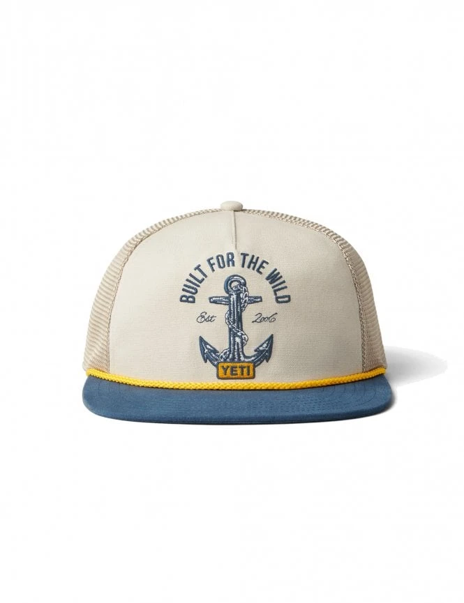 Elevate your outdoor wardrobe with the YETI Open Seas Rope Flat Brim Hat. Designed for the shore and the sea, this hat combines a classic nautical aesthetic with modern environmental responsibility. Featuring a clean Tan crown contrasted by a sharp Navy Blue visor and a matching accent rope, it’s the definitive accessory for spring and summer adventures.